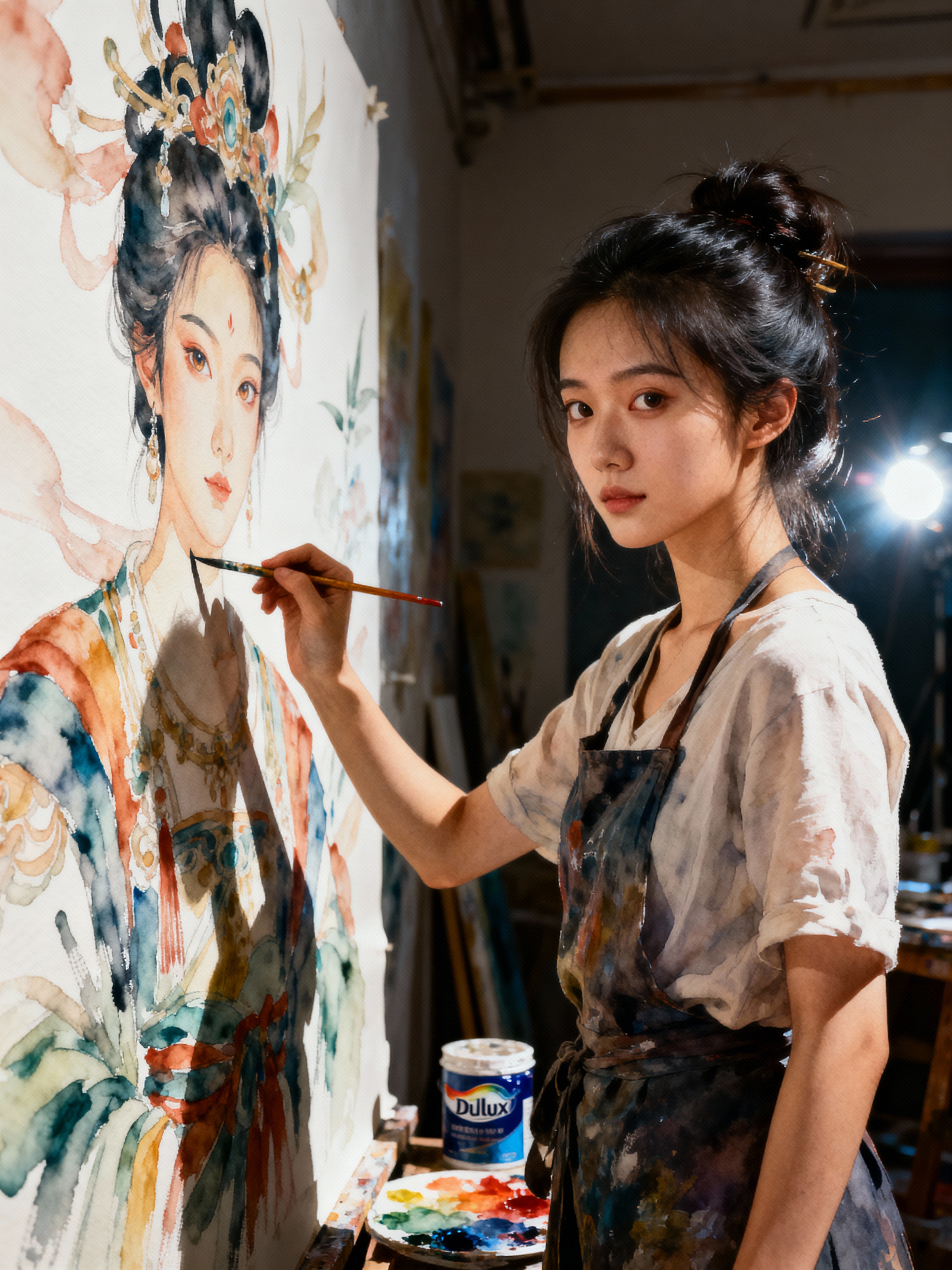 model as water color on paper, master painter painting a mural, highly detailed, artstation, masterpiece, award - winning