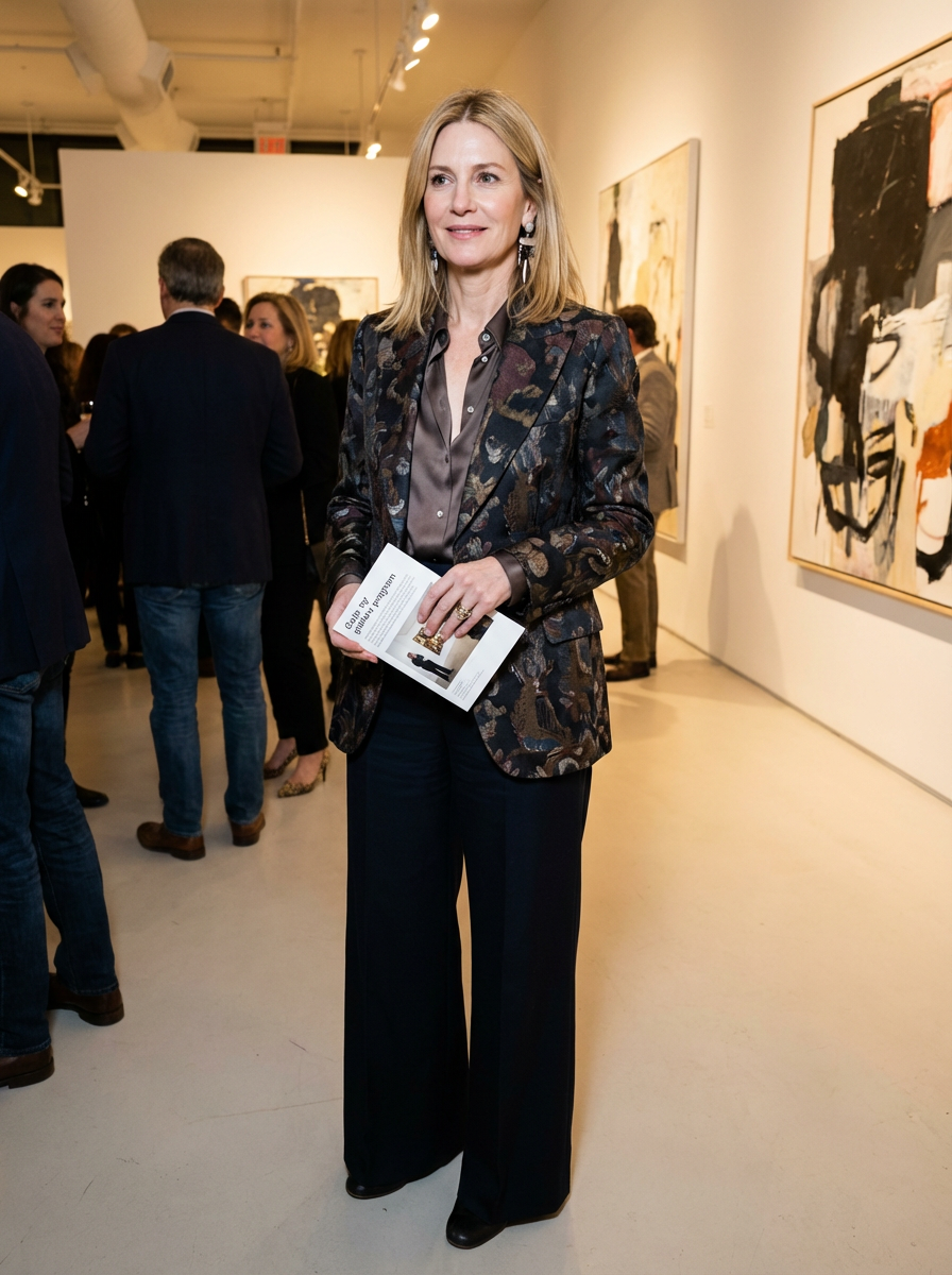 model at art gallery opening, sophisticated creative vibe, fashionable unique outfit