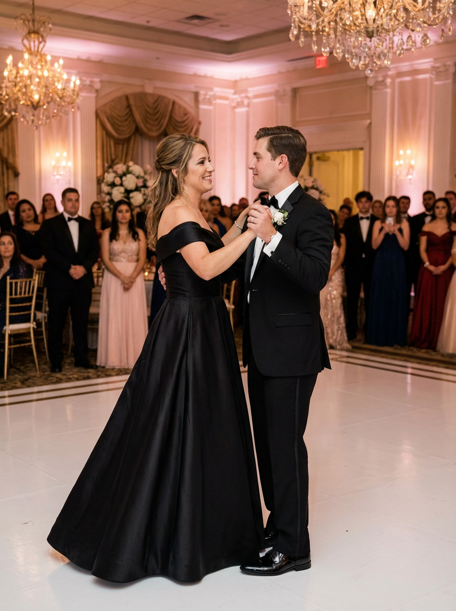 model dancing waltz at quinceanera, with chambelan partner, elegant ballroom, romantic first dance