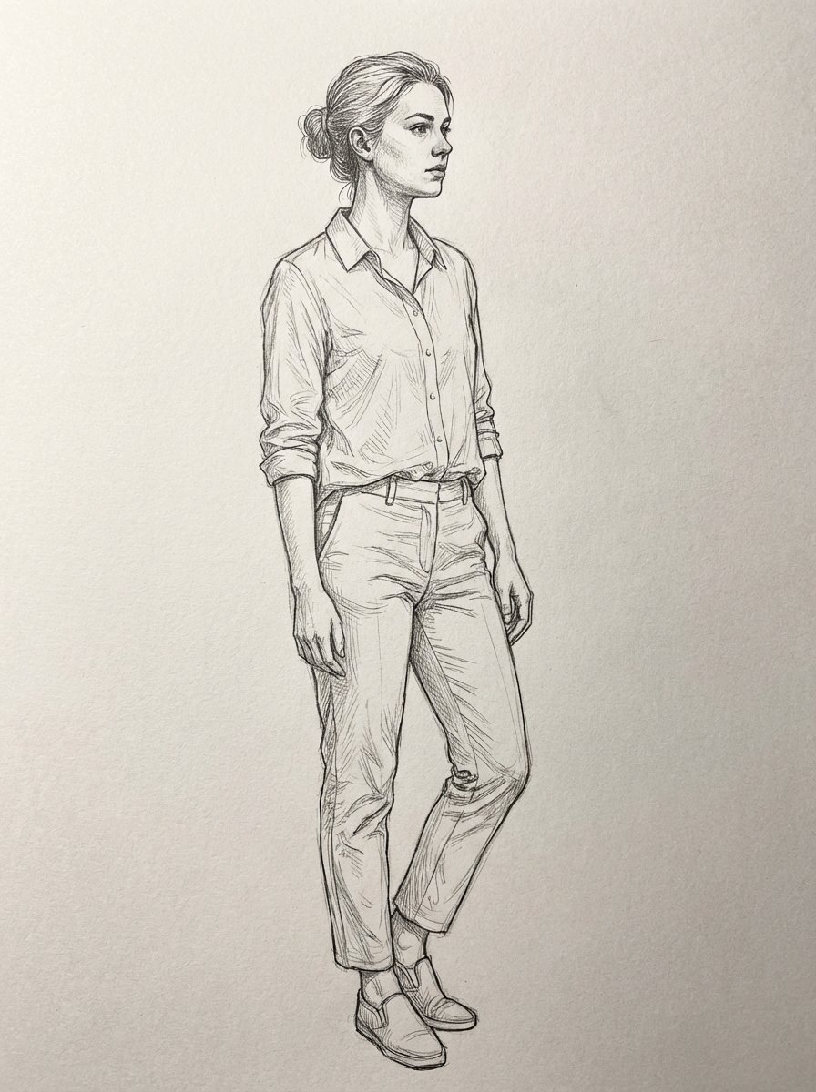 model drawn as line art sketch with pencil. fine details. extremely detailed