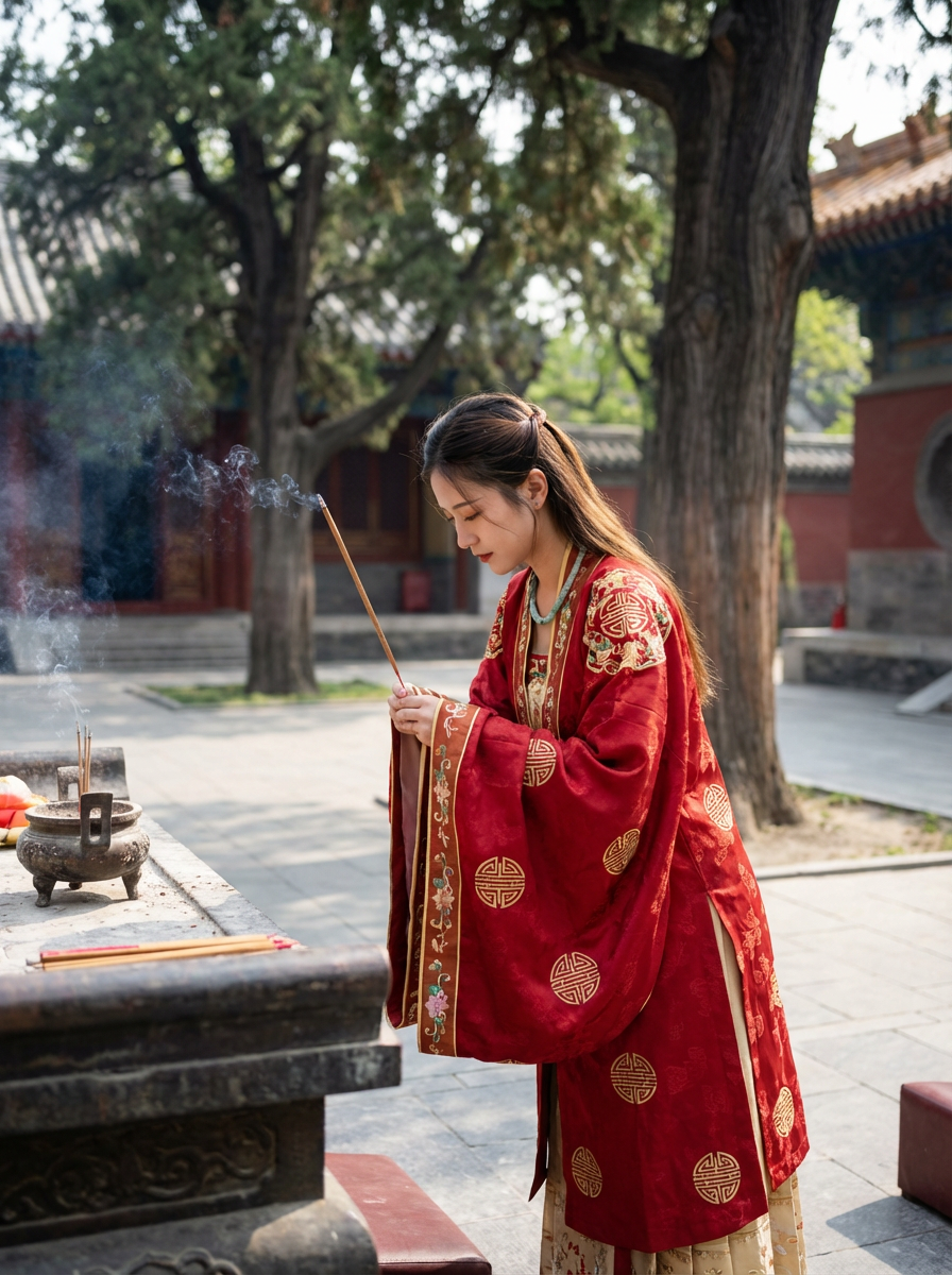 model engaged in a sacred ritual or ceremony, adorned with symbolic attire