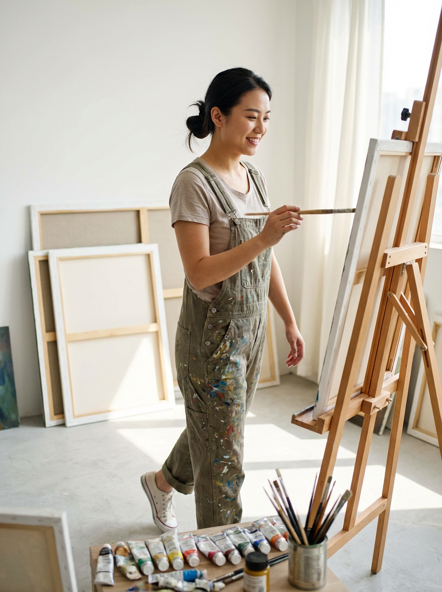 model engaging in hobby, painting, yoga, or reading , genuine candid moment