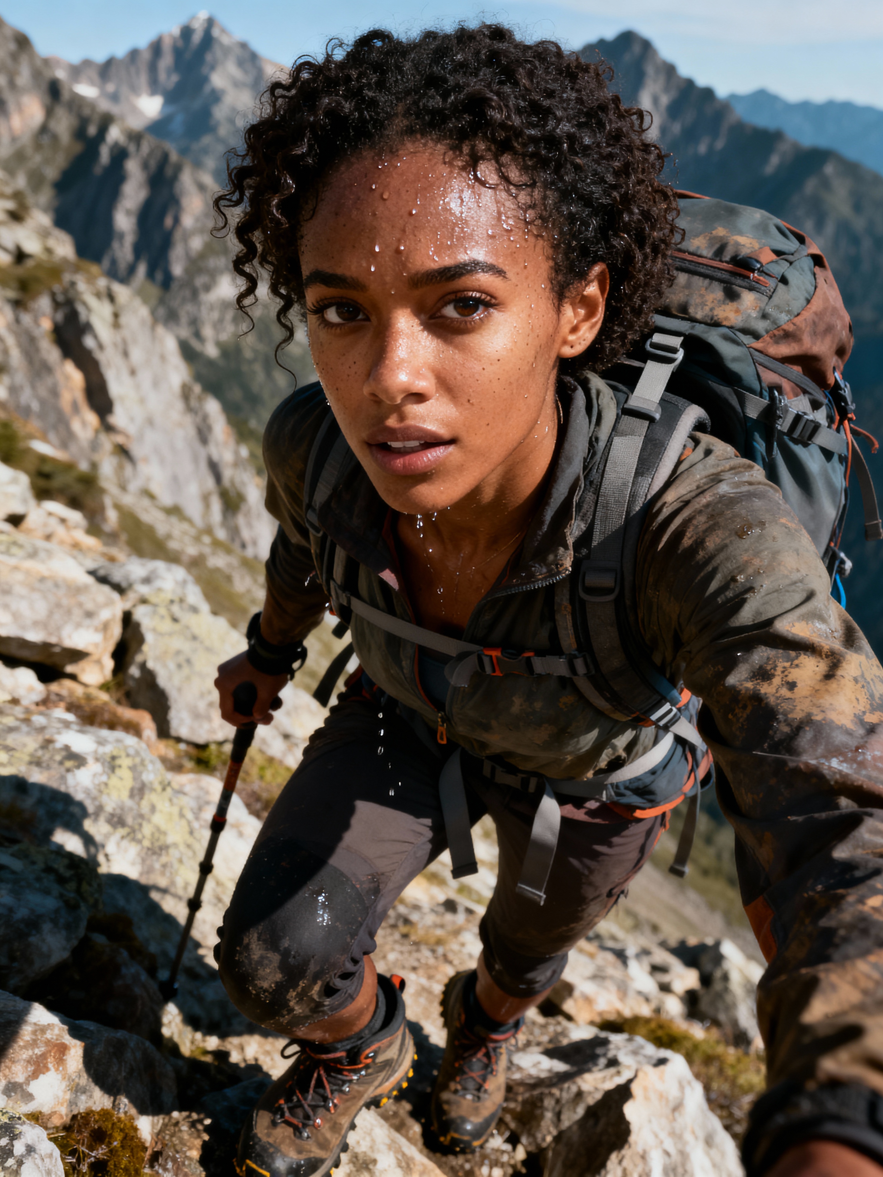 model hiking in mountains