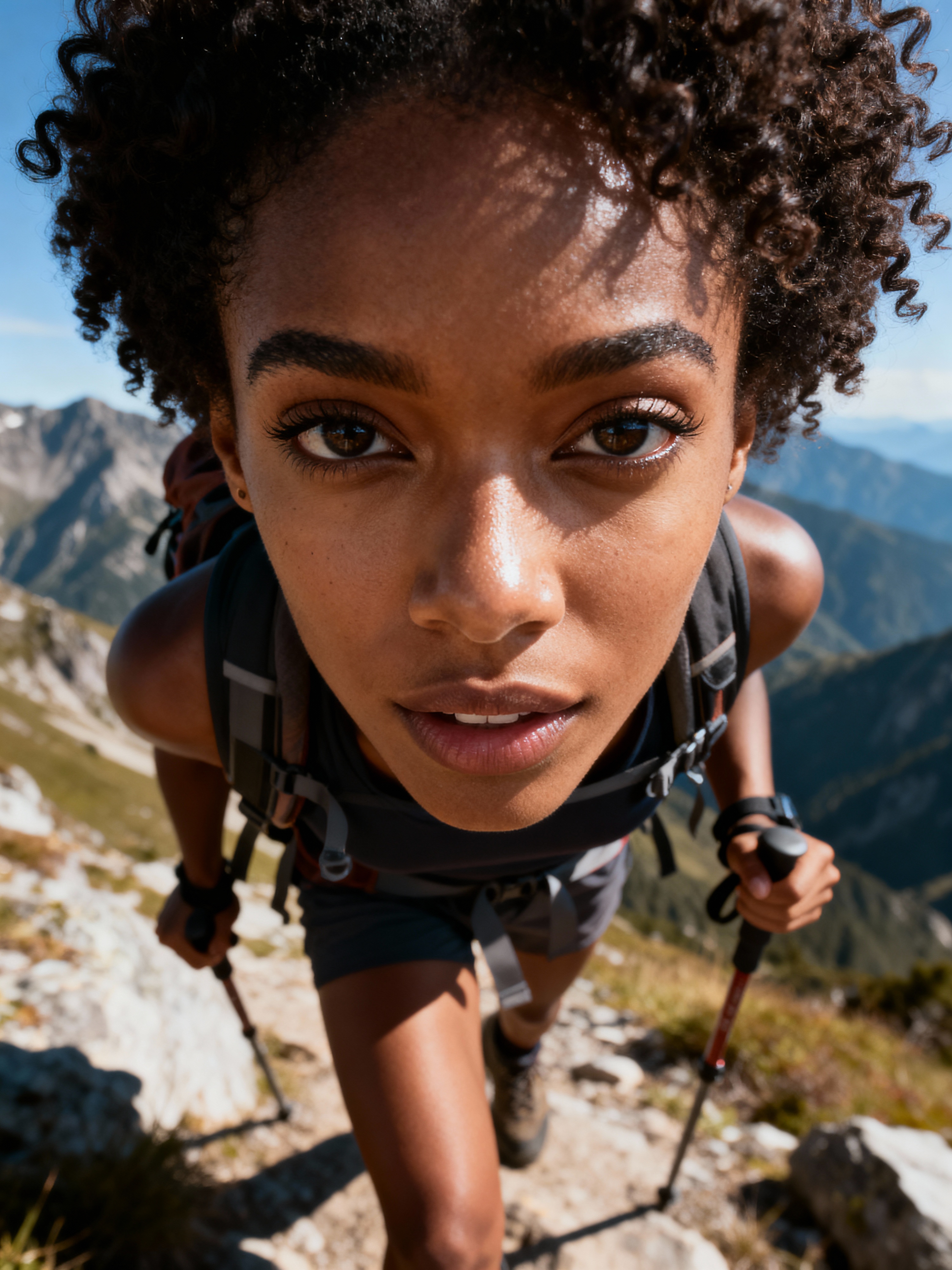 model hiking in mountains