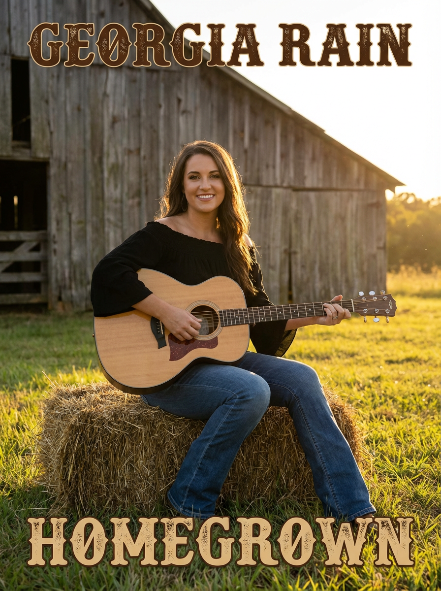 model in country album cover setting, authentic rural backdrop, genuine expression, storytelling mood