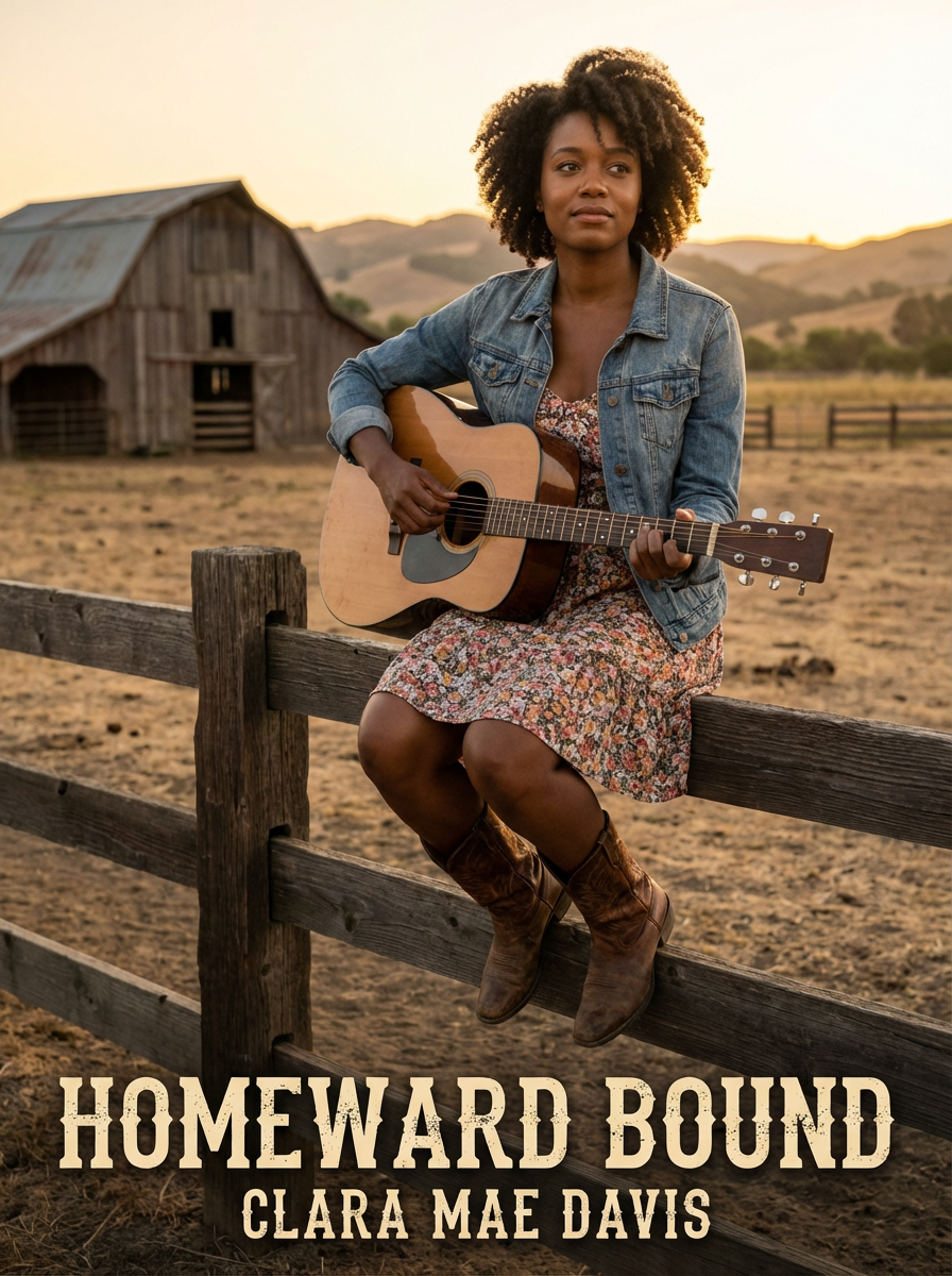 model in country album cover setting, authentic rural backdrop, genuine expression, storytelling mood