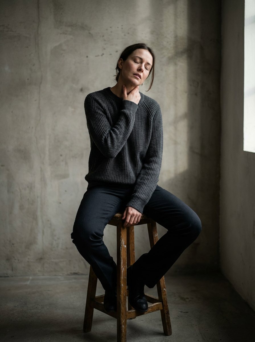model in intimate artistic portrait, soft moody lighting, authentic vulnerable expression