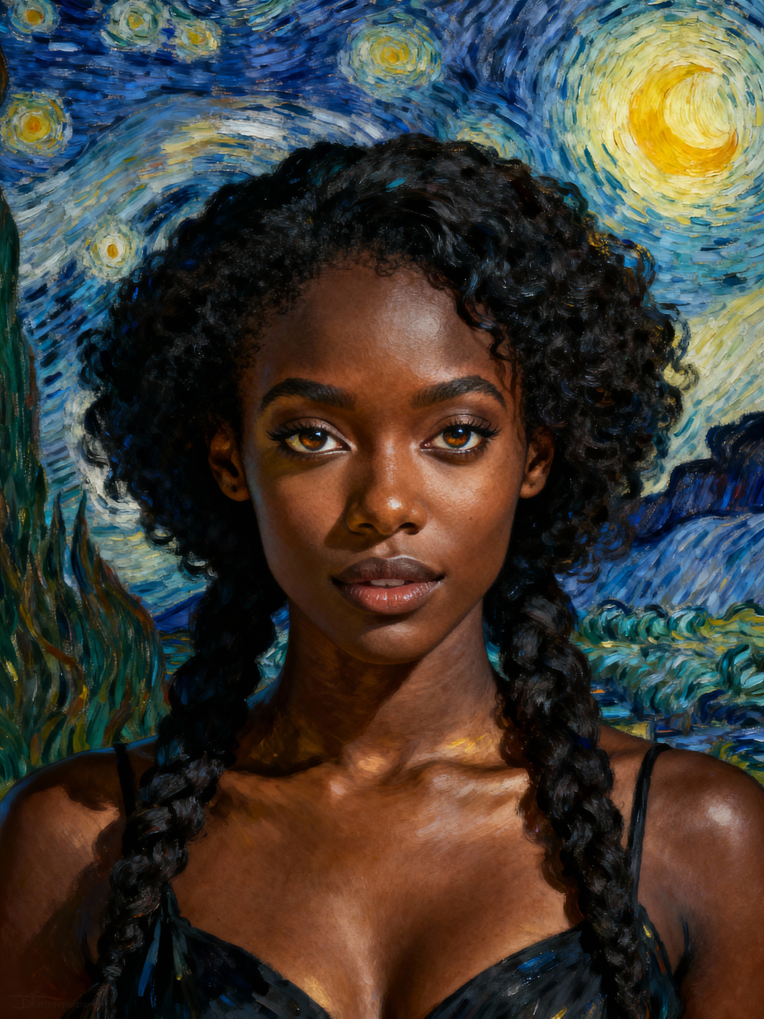 model in style of Van Gogh, elegant, intricate, digital painting, artstation, concept art, smooth, sharp focus, illustration, art by van gogh