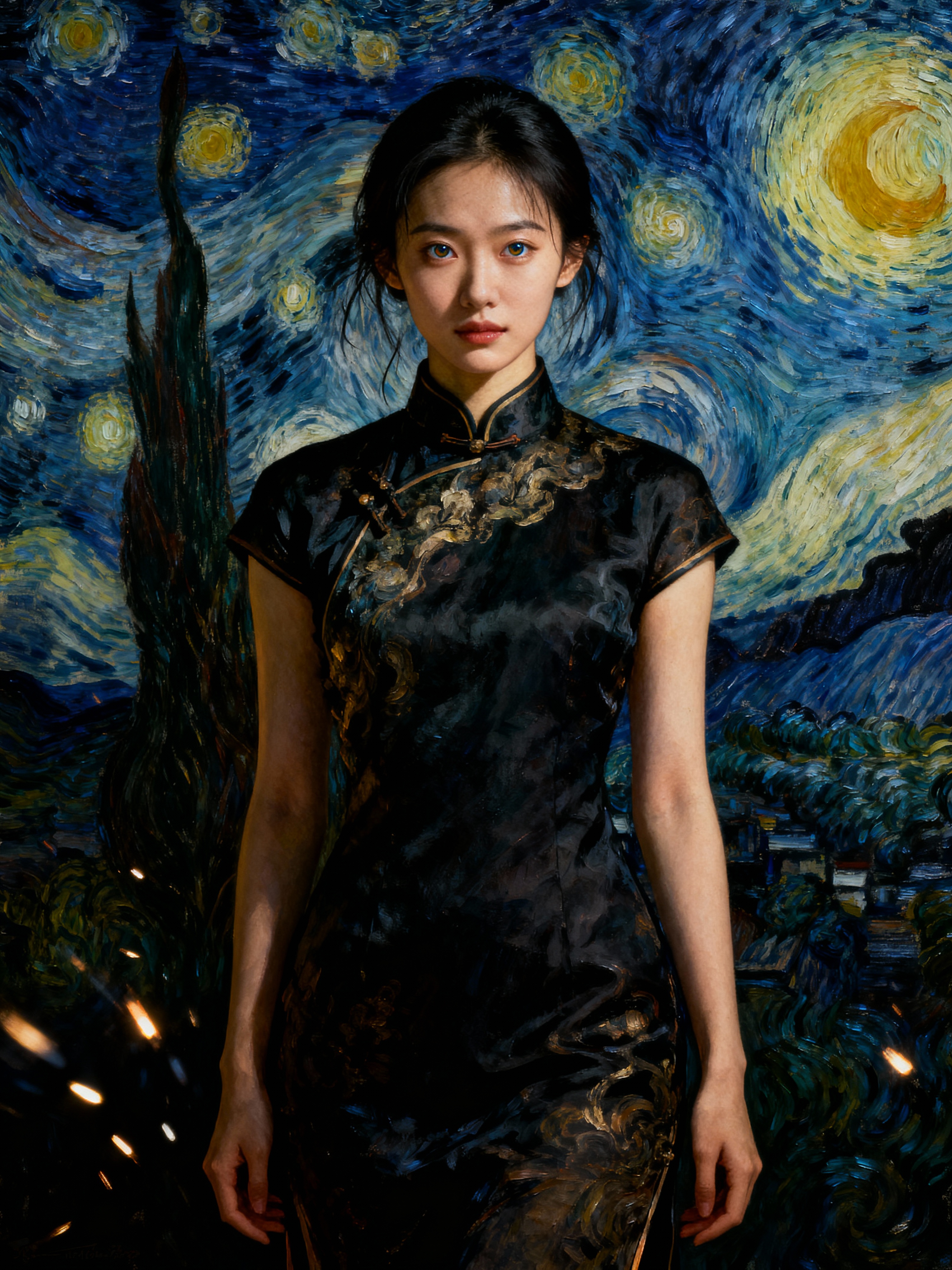 model in style of Van Gogh, elegant, intricate, digital painting, artstation, concept art, smooth, sharp focus, illustration, art by van gogh