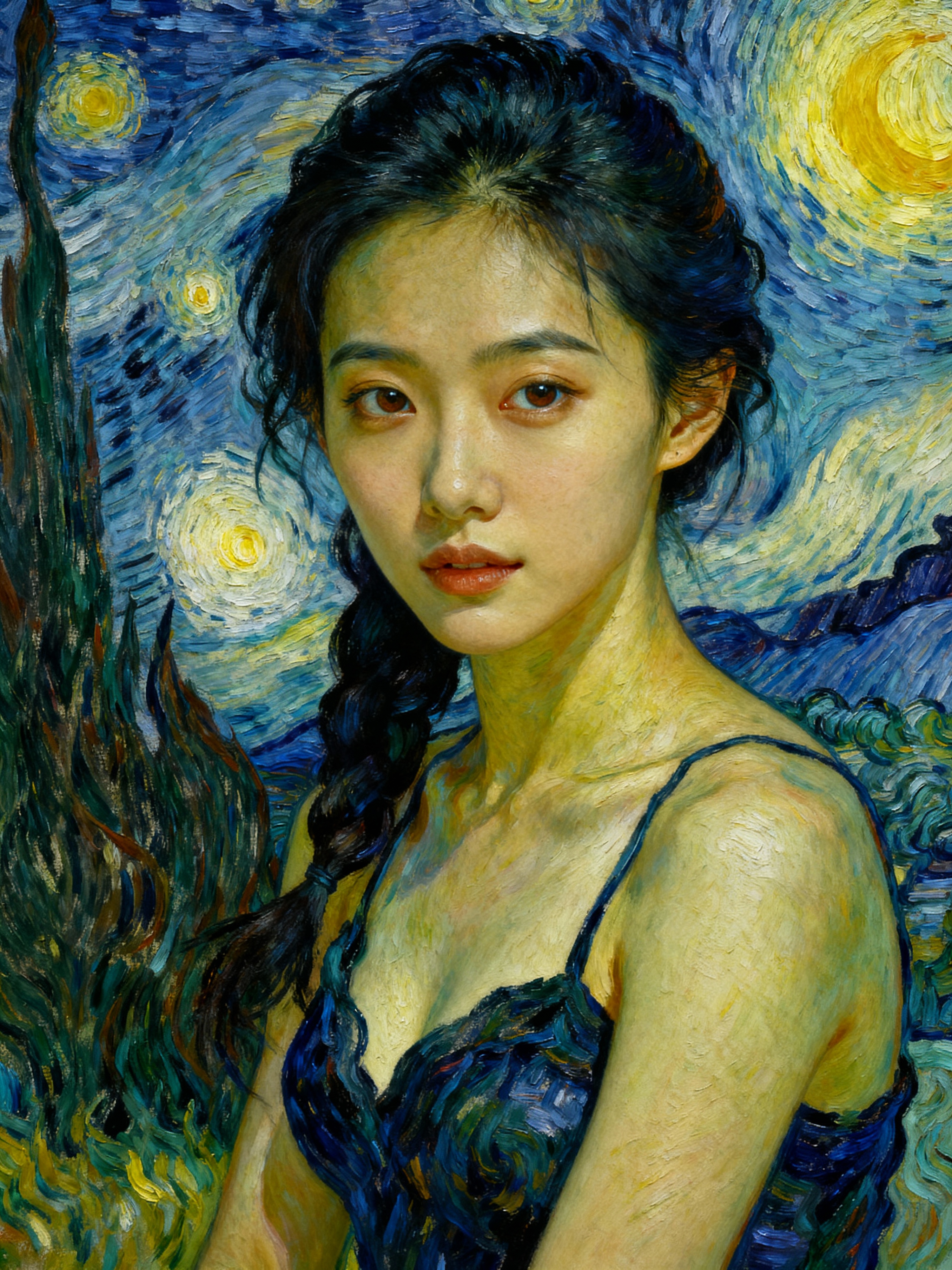 model in style of Van Gogh, elegant, intricate, digital painting, artstation, concept art, smooth, sharp focus, illustration, art by van gogh