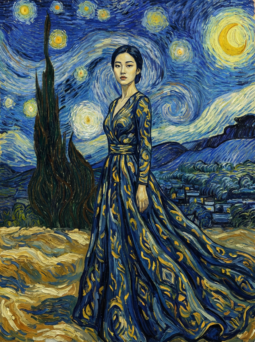model in style of Van Gogh, elegant, intricate, digital painting, artstation, concept art, smooth, sharp focus, illustration, art by van gogh