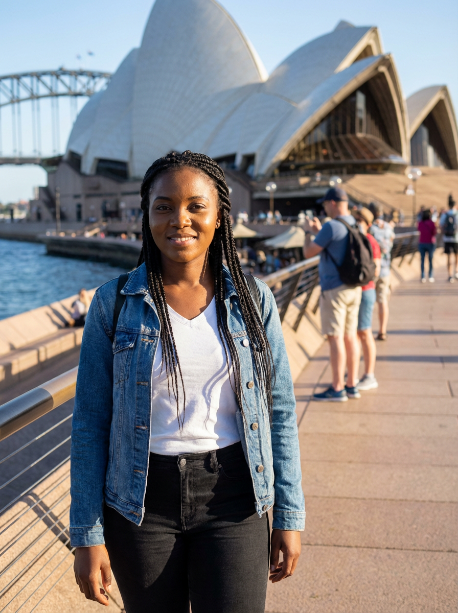 model in Sydney with the Sydney Opera House in the background