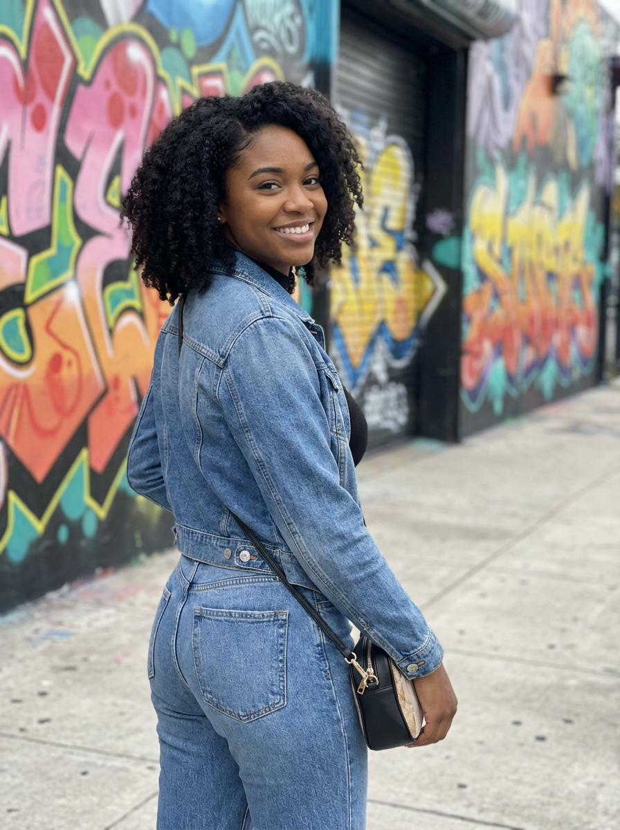 model in Wynwood Walls, colorful street art murals, trendy urban outfit, artistic vibe