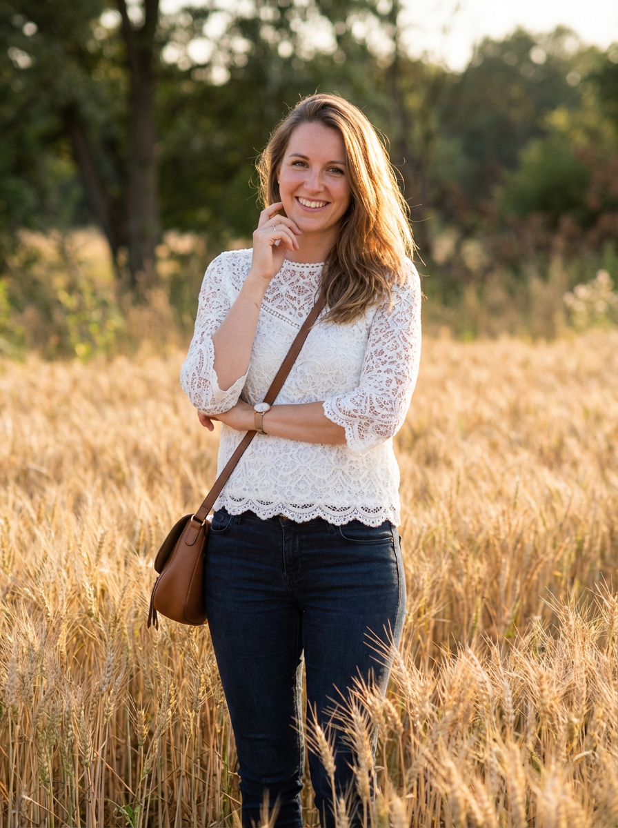 model outside in nature in forest or jungle or a field of wheat enjoying the natural world