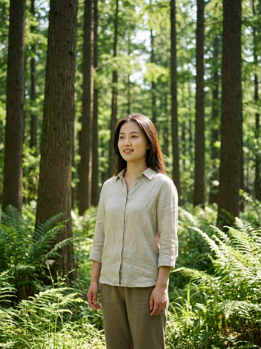 model outside in nature in forest or jungle or a field of wheat enjoying the natural world