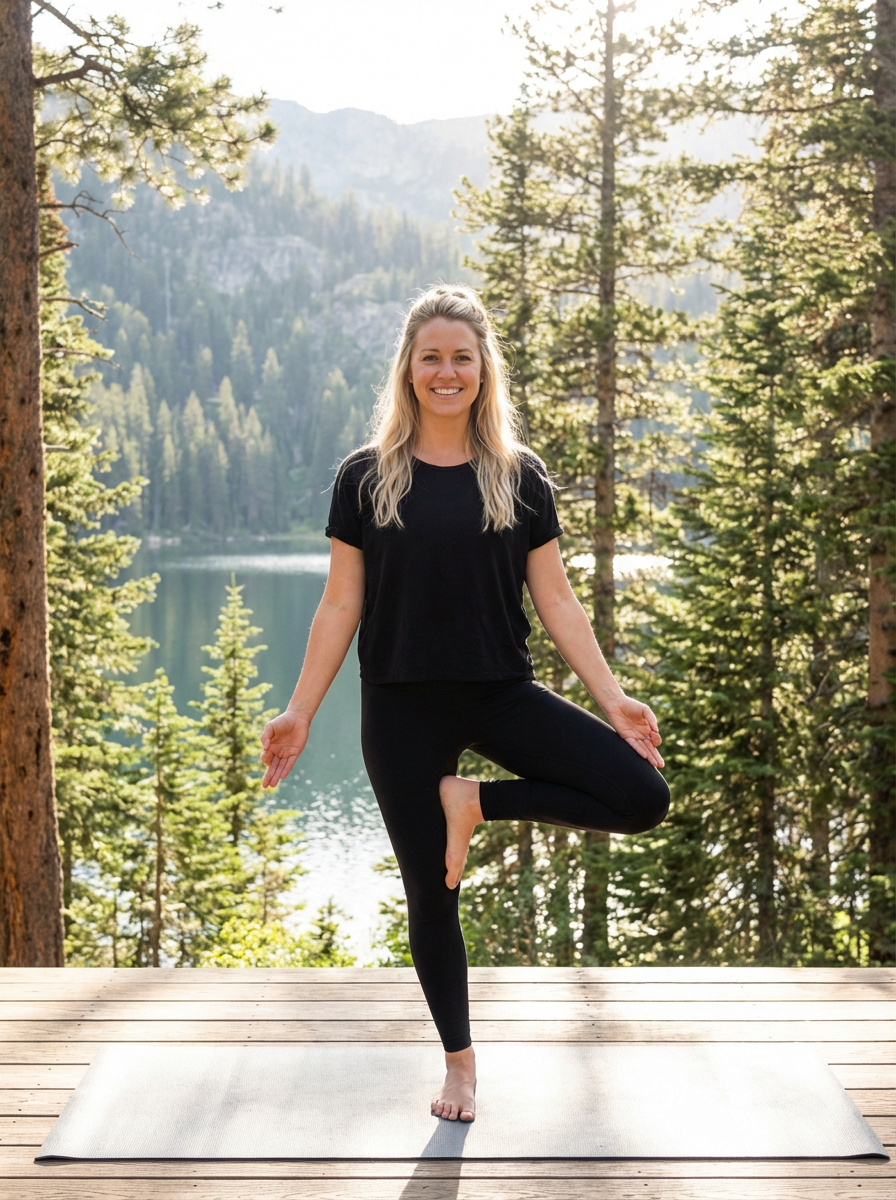 model practicing yoga in a beautiful natural setting