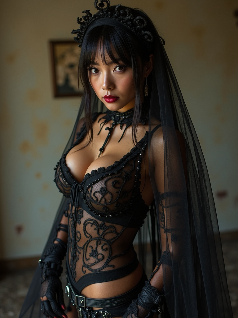 model wearing (naughty halloween) (sexy halloween costume) spooky outfit posing for photo