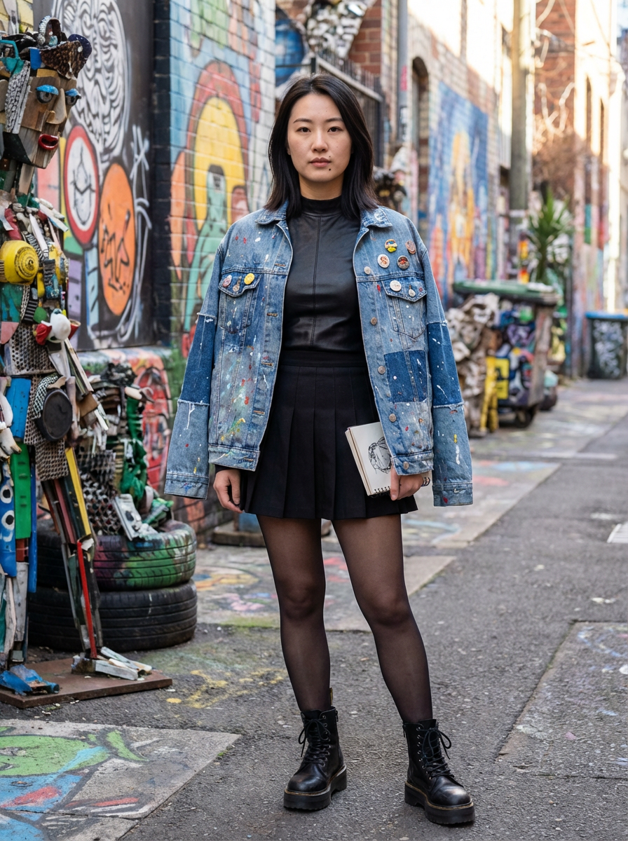 model with bold fashion choice, confident in unique style, artistic urban setting