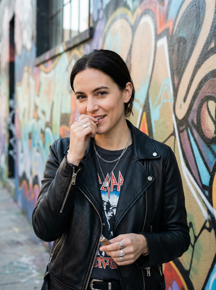 model with bold fashion choice, confident in unique style, artistic urban setting