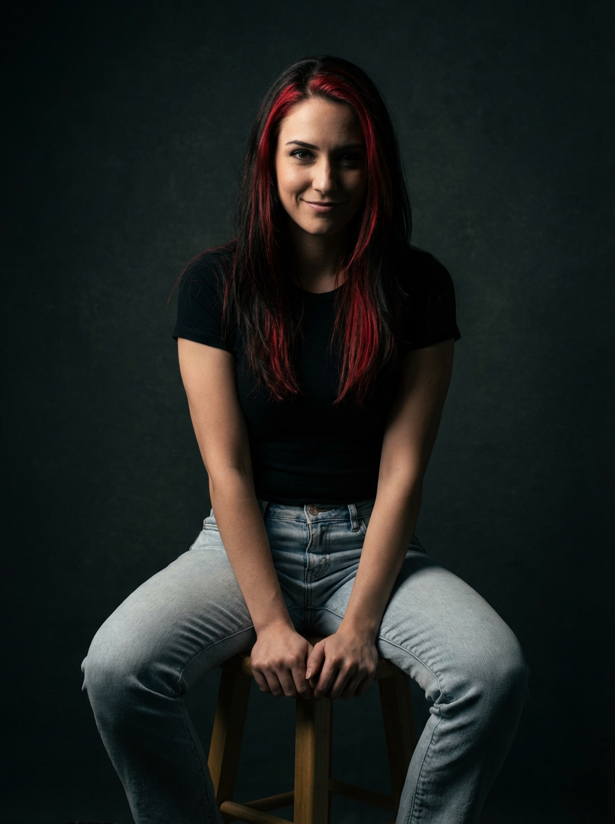 model with mysterious alluring expression, artistic portrait lighting, creative composition
